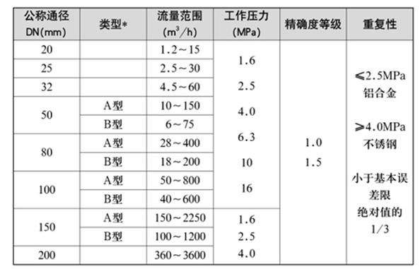 1、流量計(jì)規(guī)格、基本參數(shù)和性能指標(biāo)(見表1)