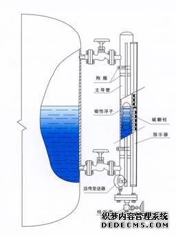 液位計根據(jù)浮力原理和磁性耦合作用研制而成。當被測容器中的液位升降時,液位計主導管中的浮子也隨之升降,浮子內的永久磁鋼通過磁耦合傳遞到現(xiàn)場指示器,驅動紅、白翻柱翻轉180。,當液位上升時,翻柱由白色轉為紅色,當液位下降時,翻柱由紅色轉為白色,指示器的紅、白界位處為容器內介質液位的實際高度,從而實現(xiàn)液位的指示。